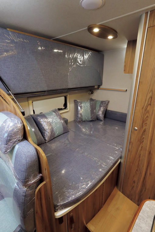そしてベッドエリアがさらに扱いやすくなっていて、折りたたみ式2段ベッドでスペースを有効に使えるようになっている。装備、レイアウトともにバージョンアップされたトリップⅢは、さらなる極上の旅を提供することだろう。
