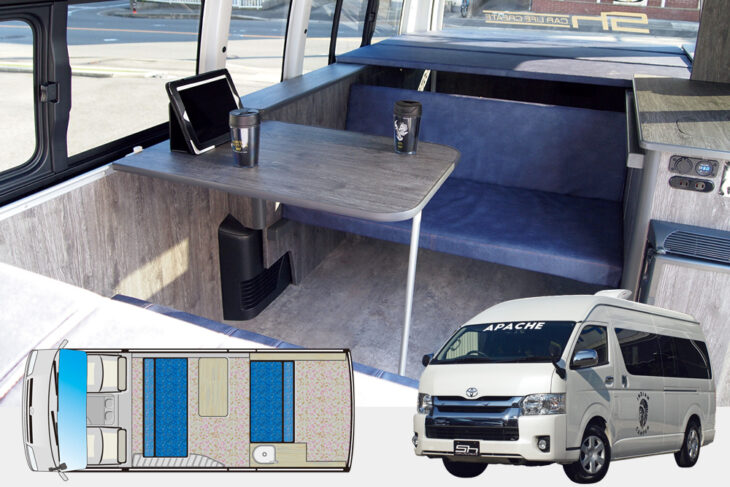 APACHE(アパッチ) デザインにこだわった快適空間 デニム調のはっ水シートにコンクリート調のフロアなど、ディテールにこだわった作り込みが特徴。無骨な雰囲気ながら、快適な機能性も秘めている。 レイアウトはセカンドシート […]